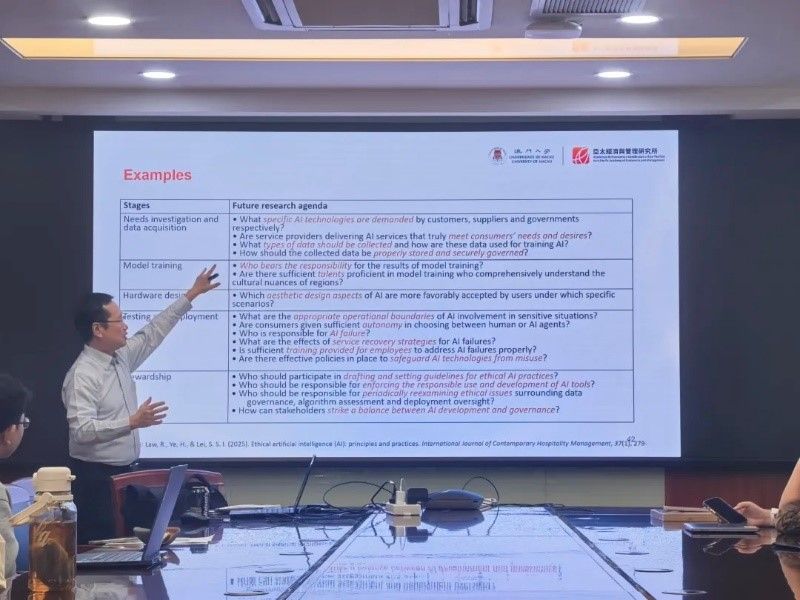 2025年10月20日,应我院人工智能与人因工程系(筹)孙兆辉副教授邀请,澳门大学发展基金会讲席教授Rob Law到访我院,并作题为“心理学与技术视角的旅游与酒店技术:应用、挑战与未来方向”的前沿学术报告,开启了一场横跨心理学、信息科学与旅游管理的跨学科思想盛宴。本次报告被列为“人文与社会科学研究院知名学者学术讲座”。报告由孙兆辉主持。