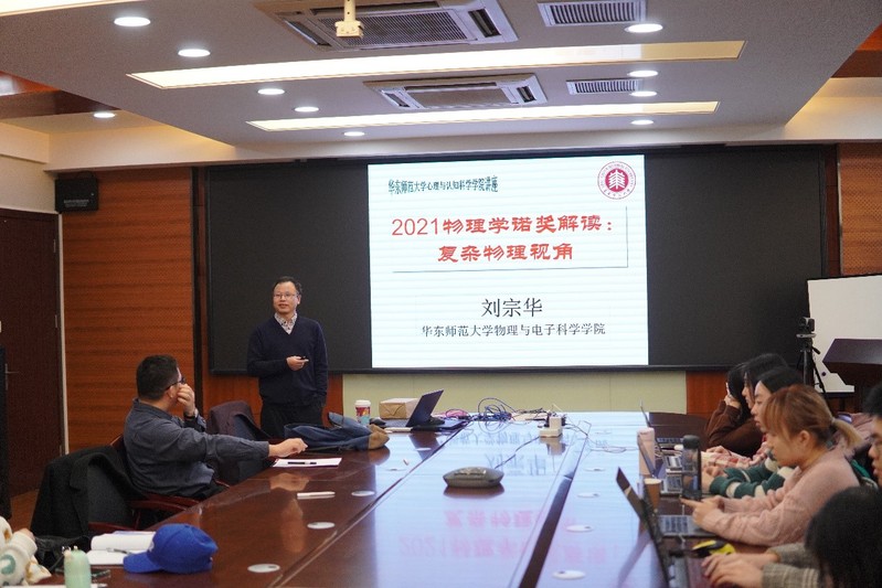 2021年11月25日下午,在俊秀楼305会议室,学院邀请我校理论物理研究所所长刘宗华教授作题为“2021物理学诺奖解读:复杂物理视角”的学术讲座。学院2019级“耀翔班”及其他年级本科生40余位学生参加,活动由2019级“耀翔班”青年班主任紫江青年学者尹大志研究员主持。