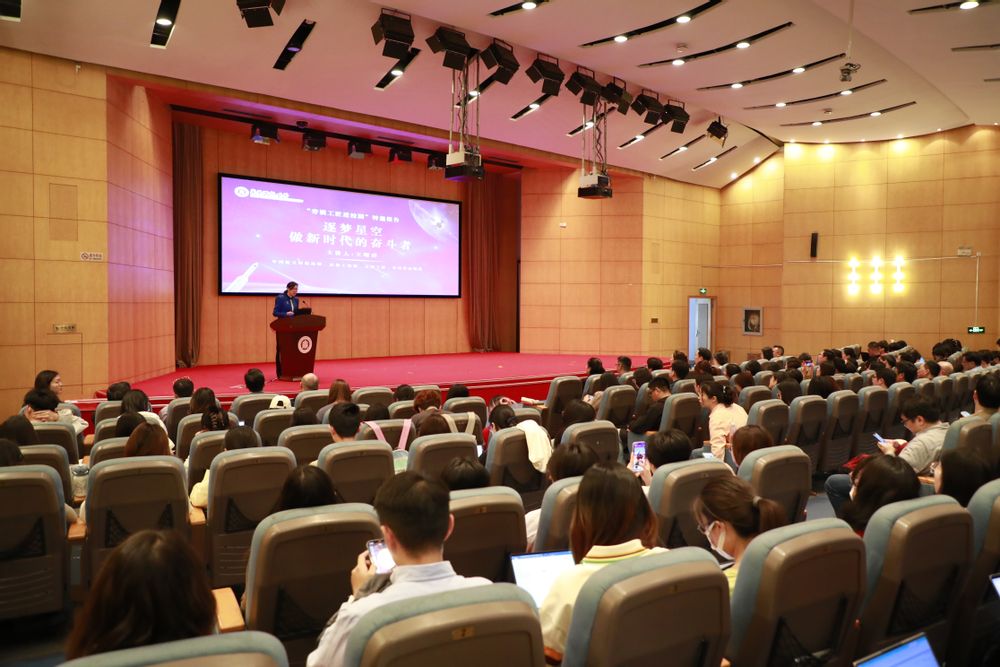 在华东师范大学普陀校区科学会堂,王曙群为300余名师生作“逐梦星空 做新时代的奋斗者”专题报告。