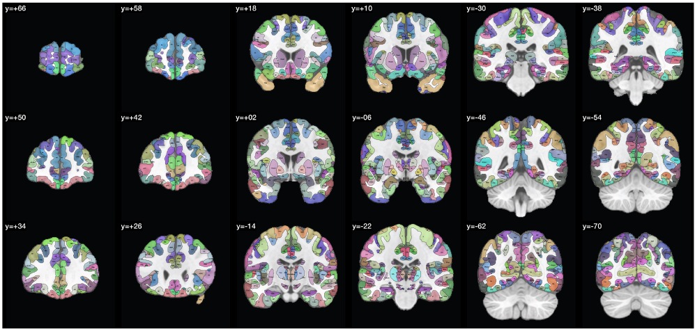 图1 以体素为基础的皮层分区冠状位切面呈现
