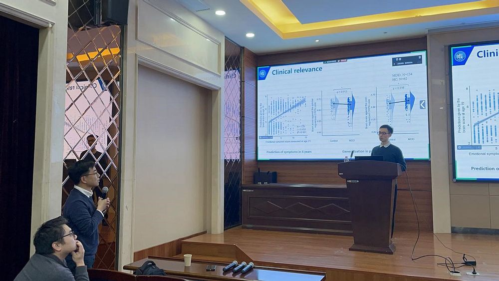 罗强研究员的报告介绍了团队自主设计的具有概念-感知双通道的类脑AI,对探索情绪障碍的因果机制提供了新视角和新方法。其首先利用两个大型青少年神经影像队列,通过情绪面孔任务探究情绪处理功能,发现了大脑对愤怒面孔的反应可分解为眶额叶和枕叶相关的网络,以及情绪症状、遗传风险和脑网络之间的关系。其次,基于情绪的建构理论,其团队设计了一个能够用抽象概念重塑视觉编码的网络,并验证了人工网络在情绪识别和分类上的有效性。结果显示,情绪症状和过度约束的人工网络之间具有显著的相似性,并且具有神经编码与人工网络之间的相似性对于情绪障碍个体的病程发展具有预测性。此外,罗强研究员还使用了跨模态数据来训练概念网络,发现使用多模态数据来提取抽象概念的效果优于仅使用单模态面孔数据的提取效果,对视觉编码的指导作用更强。最后,罗强研究员介绍了其负责的公共数据库的具体情况,邀请老师和同学们使用数据库中的已有的随访数据进行挖掘和探索。