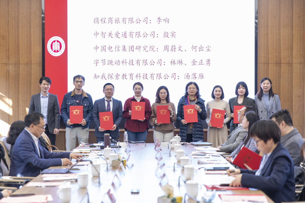 吴健、方媛为北森云计算有限公司沈歆、长春金赛药业有限责任公司黄志强、飞利浦中国投资有限公司陶梦喆、美团祝嘉宾、前程无忧王婉婷、上海哔哩哔哩科技有限公司马晓瑄等35位实践指导教师颁发聘书。