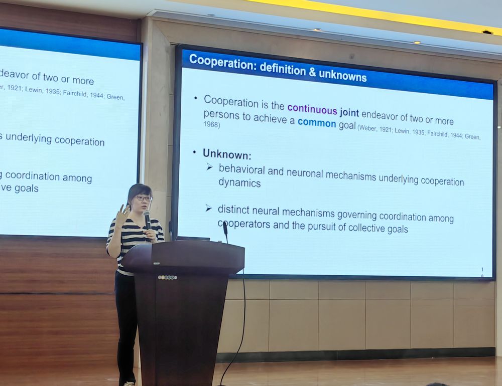 马燚娜教授首先讲述了人类社会合作研究的重要性。她指出,人类社会的运作依赖于大规模合作。然而,个体在合作上的差异以及对他人合作行为的搭便车动机使得大规模合作变得脆弱。破解表征大规模合作的神经编码对于理解社会决策和合作至关重要。