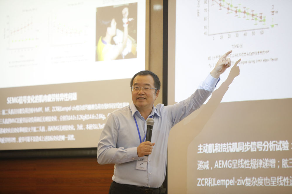 浙江大学心理科学研究中心王健教授的报告主题为“表面肌电评估技术研究与应用”。王健的报告围绕多感觉整合理论模型、权重改变机制、预期和补偿姿势调节等介绍相关理论研究进展,同时结合脊柱稳定性这一涉及慢性腰痛和颈痛的实际问题,介绍姿势控制障碍在疼痛发生过程中的作用机制及其主动干预理论和方法。