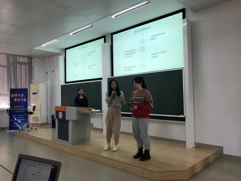 在培训技能比赛中,参赛队伍围绕“90后员工的管理”这一主题延伸思维,展开了培训设计。参赛队伍的表现都非常精彩,受到了评委老师们的赞赏。经过激烈地角逐,裴姣姣、张东一、姜鹰组入围上海市五校联赛。