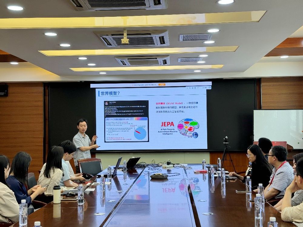 接着,双方党支部立足计算机科学、心理学两个学科,研讨大语言模型与社会治理学科交叉。计算机科学与技术学院的周杰老师以《从大语言模型到世界模型的前沿洞察》为题进行报告,深入浅出地介绍大语言模型的基本原理、最新进展、发展趋势,并剖析其在社会治理方面的可能应用。