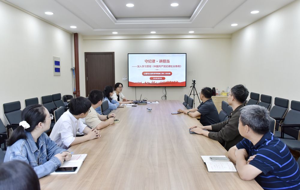 5月29日,心理学院教工第二党支部围绕党纪学习教育相关要求,开展了主题为“守纪律·讲担当——深入学习贯彻《中国共产党纪律处分条例》”的专题组织生活,通过支部书记讲党课的形式深入学习《中国共产党纪律处分条例》的修订重点,结合教育系统违纪典型案例开展警示教育,进一步强化教工党员的纪律意识和规矩意识。