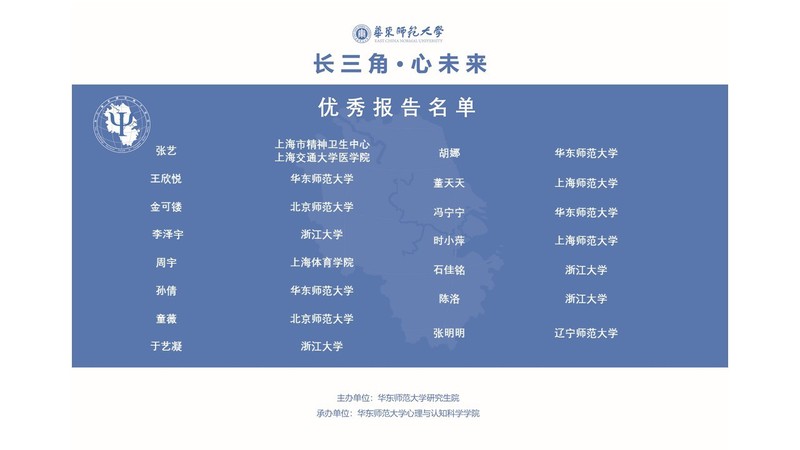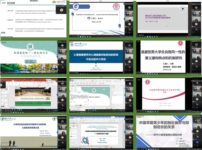 在征文报告环节,来自华东师范大学、上海师范大学、浙江大学、广州大学、辽宁师范大学等高校的8名同学进行了报告,研究涵盖消费者信任、数学焦虑、儿童社会情绪问题、青少年亲社会行为等领域。丁雪辰副教授对同学们的报告进行了点评。