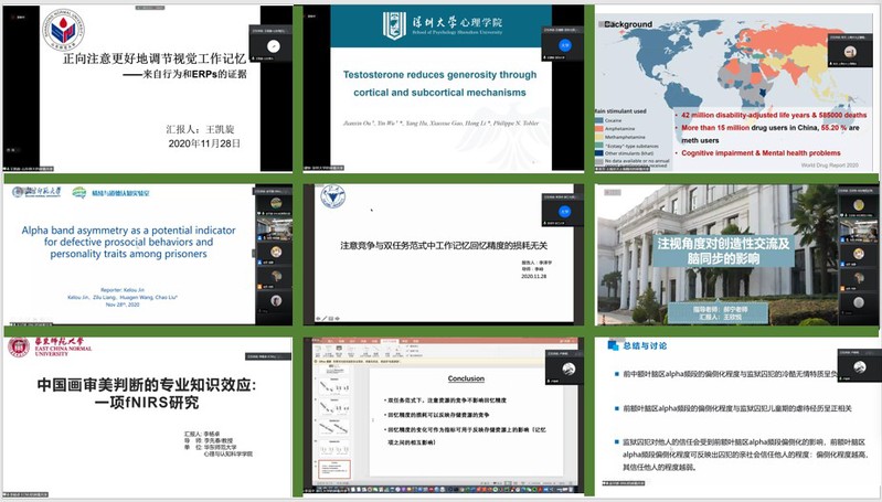 在征文报告环节中,来自中国人民大学、上海体育学院、华东师范大学、北京师范大学、贵州师范大学、浙江大学、上海师范大学大学等高校的11名博士生进行了报告,研究涵盖疫情研究、表情研究、大众心理健康、手机依赖等多个领域。王燕教授为同学们的报告进行了点评。