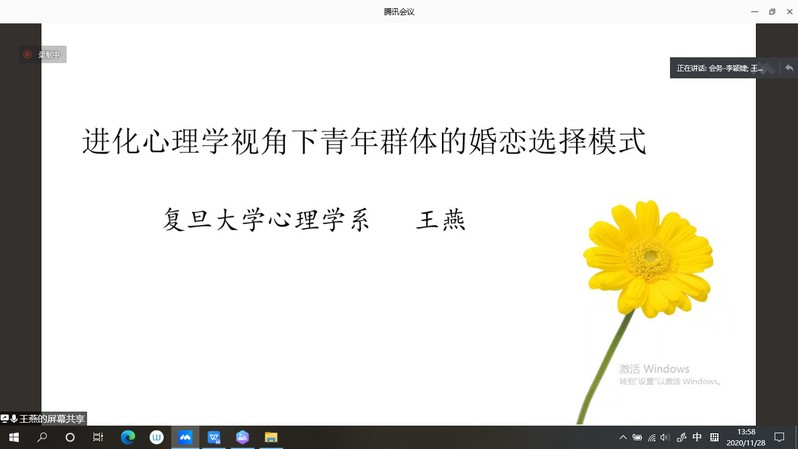 第二个板块中,华南师范大学的王瑞明教授做了关于语言转换和认知控制的特邀报告。复旦大学王燕教授做了关于进化心理学视角下的青年婚恋选择模式的特邀报告。