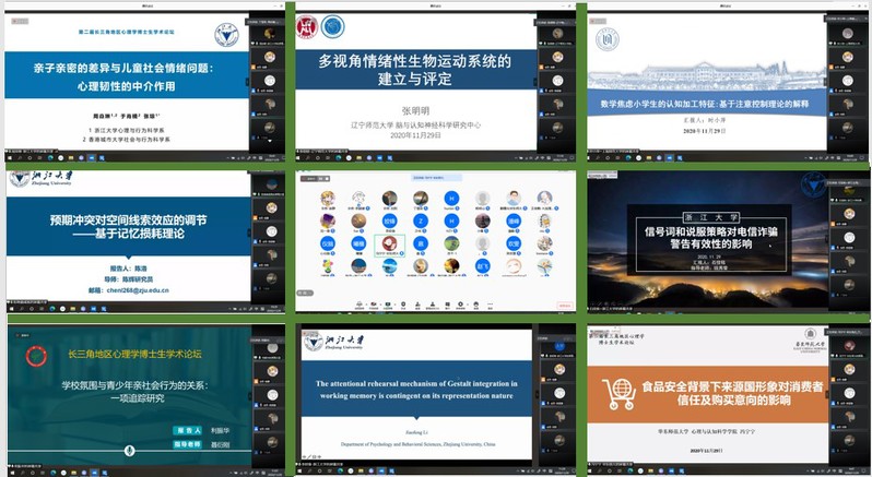 2020年11月28日-29日,第二届长三角地区心理学博士生学术论坛在我院成功召开。本次论坛由华东师范大学研究生院主办,心理与认知科学学院承办。论坛采用线上会议形式,共征集了来自全国20余所高校的40多篇摘要投稿,从中遴选出26篇稿件进行论坛报告。同时论坛邀请了6名专家进行特邀报告,并为受邀的报告进行点评。100余人通过腾讯会议参加论坛,另有700余人通过平台观看论坛直播。华东师范大学心理与认知科学学院的部分博士研究生线下参加了论坛。