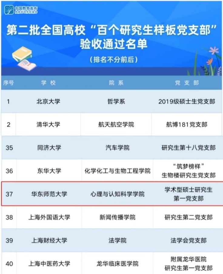 近日,教育部公布第二批全国高校“百个研究生样板党支部”和“百名研究生党员标兵”创建培育工作验收通过名单,最终认定100个研究生样板党支部和100名研究生党员标兵全部通过验收。我院学术型硕士研究生第一党支部通过第二批全国高校“百个研究生样板党支部”创建培育工作验收。