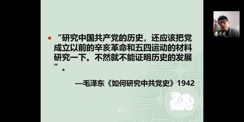 4月22日下午,国际汉语文化学院、国际关系与地区发展研究院、心理与认知科学学院2020年入党积极分子联合培训班第三次培训在线上举行。华东师范大学党校副校长、高级研修学院副院长张俊华为学员们带来《中国革命史述评》专题讲座,来自三个学院的一百多名入党积极分子参加了此次培训。