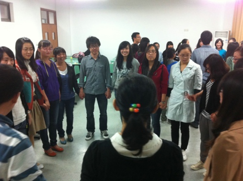 2012年10月24日晚18点半,心理与认知科学学院研究生12级新生党支部组织了一场别开生面的组织生活,主题为“凝聚我心,支部同行”。此次活动是党支部支委成立以来首次由四位支委牵头,全体支部成员参与的增强凝聚力的组织生活。