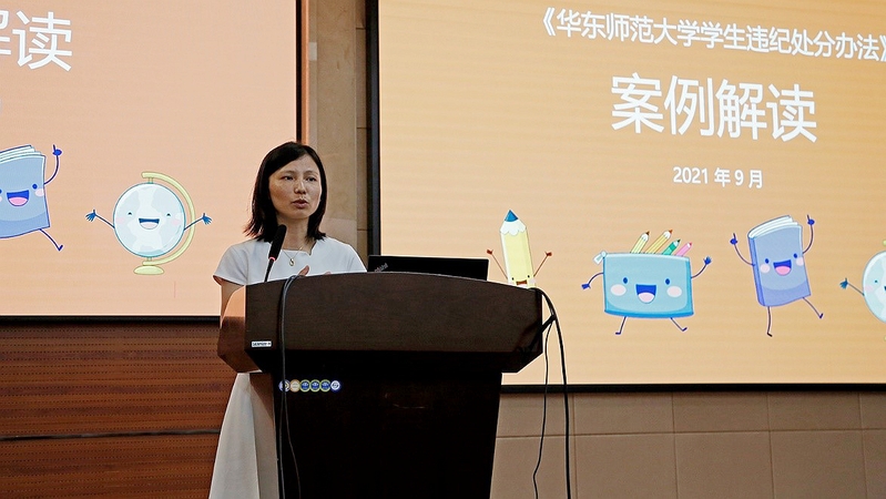 学生(研究生)工作处副处长李燕为全体新生开展规则教育。李老师详细介绍了校园规章制度,叮嘱新生仔细阅读《学生手册》,并且围绕一些真实的学生案例,为同学们解析校园违纪处分办法,使“听规则、守纪律”的重要性深深埋入每位新生的心中。