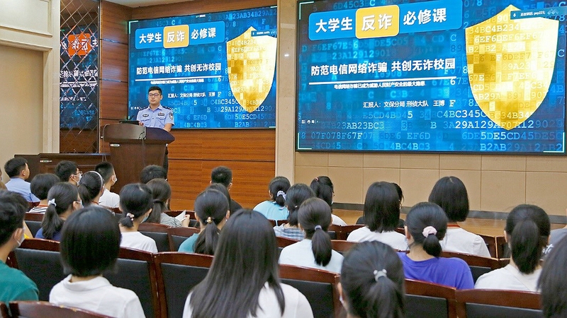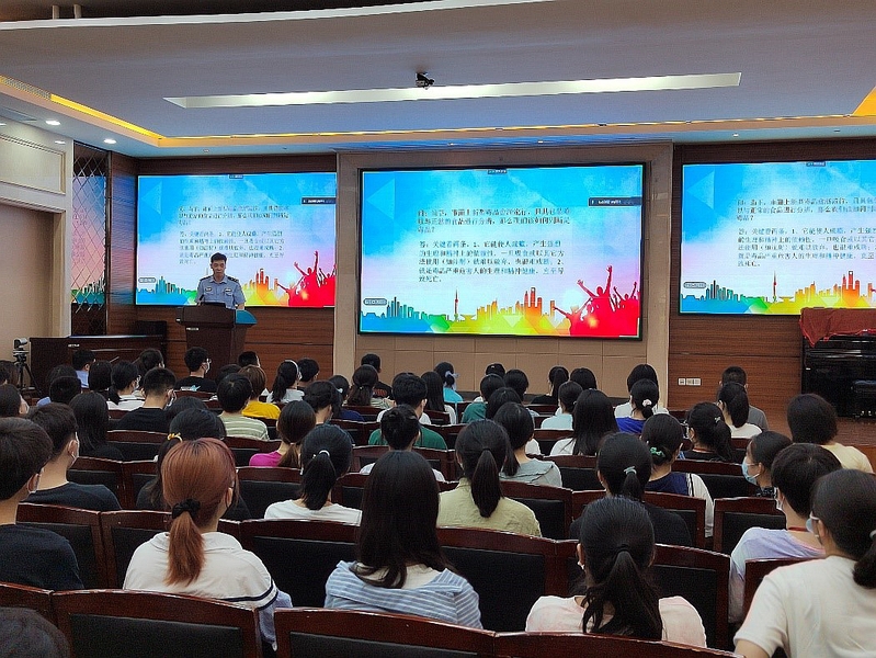 学院党委邀请党建联建合作单位上海市反电信网络诈骗中心和文保分局的两位警官,为同学讲述电信网络诈骗防范知识和技能、校园禁毒宣传教育。两位警官用生动的案例、丰富的图片及视频材料为大家详细讲解,同学们收获颇丰。