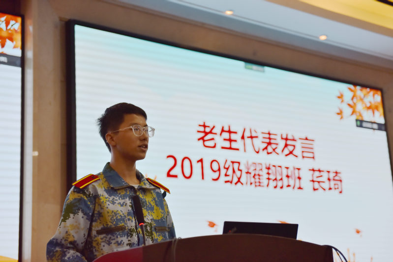 2019级心理学专业“耀翔班”学生苌琦作为老生代表发言。他以“成长”为主线,回顾了两年来的收获,并向新同学们分享了学习和生活上的经验。在学习中,要投入足够的精力,认真学习心理学的专业知识,学会合理规划时间,重视团队合作。同时,可以积极参与课余活动,主动尝试,勇敢表现自己。在面对不足时,也要以成长的眼光,客观、理性地看待自己,相信自己具有不断进步的能力。