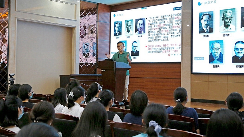 学院副院长郝宁为同学们作了院史教育讲座。从1951年至今,心理学科与华东师大一起走过了70年,取得了辉煌成就。同学们在郝老师的讲述中感受到心院的深厚底蕴,增加了归属感、集体荣誉感和使命感。