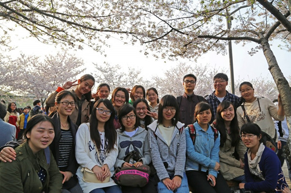 经过了大约1个小时的行程到达同济大学后,同学们便迫不及待地行向同济樱花大道。大家纷纷拿出手机,照相机,找寻着这最合适,最美丽的角度在樱花树下留下了自己的倩影。