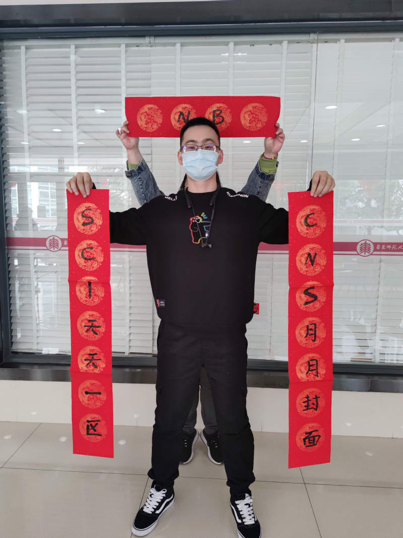 俊秀楼也准备了喜气洋洋的春联,同学们纷纷拿起毛笔,写上新春的祝福。许多同学表示要带上写好的春联贴到实验室或者宿舍,充满了新年的仪式感。
