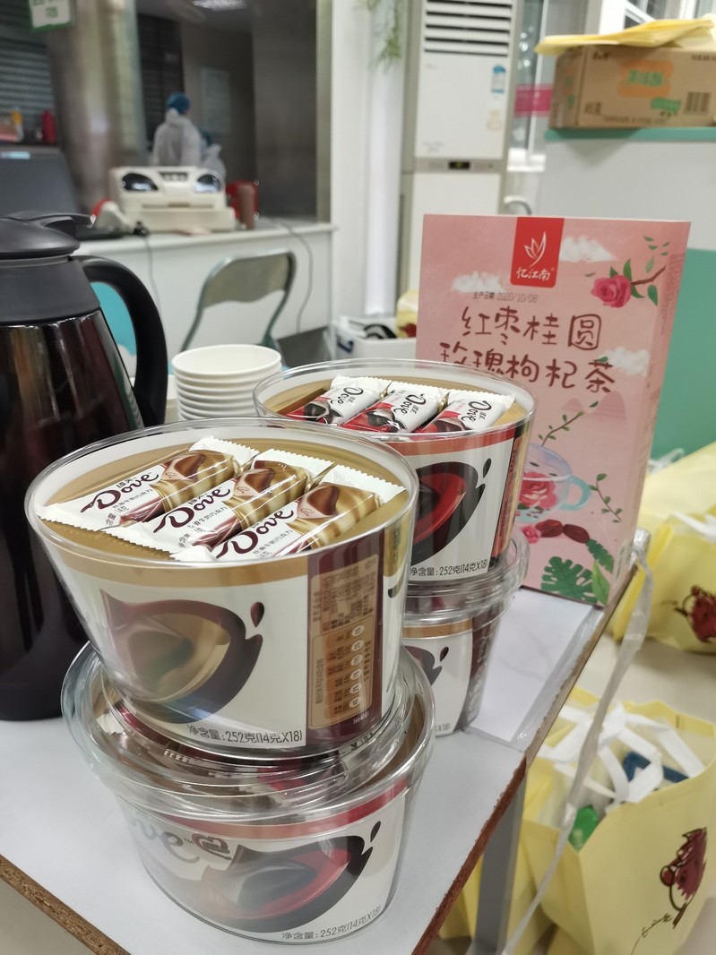 中午,参与献血的同学在校医院有序排队,依次进行信息登记、血液类型检验、静脉采血等环节。院研究生会的同学们担任爱心志愿者,专门为献血同学准备了红枣茶和巧克力,以帮助他们补充能量。