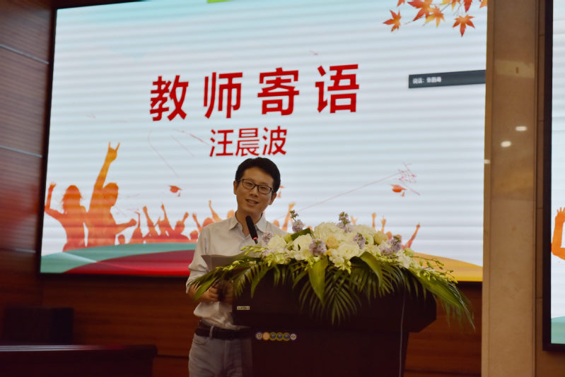 心理学系、学院行政、认知神经科学研究所教工党支部书记汪晨波作为教师代表发言。汪老师以轻松诙谐的RAP开场,从本科阶段、硕士研究生阶段以及博士研究生阶段三个方面为新生们讲述了各个阶段不同的探索目标和内容,勉励新生要通过这段求学时间去探索你是谁,决定和谁在一起,将来要从事什么职业,想要过怎样的人生。从自己的内在体验中找出意义,为无意义的世界创造意义。