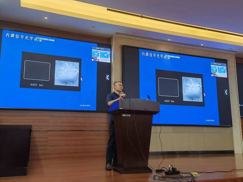在报告中,吕海东教授除了介绍经典的视觉双通路模型外,还向大家展示了最新的研究成果。他的研究团队采用内源信号光学成像的方法,在猕猴视皮层的V2和V4区发现了方向神经元在亚毫米尺度上的功能模块。这些功能模块具有一定的空间聚集性,与背侧MT区的方向神经元相比,它们在反应特性上有较大的区别。吕教授进一步指出,这些方向神经元在物体-背景分割和运动物体的识别任务中可能起到重要的作用。这些新的研究结果表明,背侧和腹侧通路在处理视觉运动信息时是同步进行的,并且它们在不同的视觉认知功能中发挥着不同的作用。传统的视觉双通路模型认为视觉运动信息由背侧通路处理,而腹侧通路主要负责物体形状和颜色的加工。然而,吕教授的研究为我们提供了新的视角,揭示了腹侧通路在视觉运动信息处理中的重要性。这些发现对于我们更好地理解视觉系统的功能和认知加工机制具有重要的意义。吕海东教授的研究成果为视觉运动领域的研究提供了新的突破口,也为进一步探究腹侧通路在视觉运动认知中的作用提供了启示。