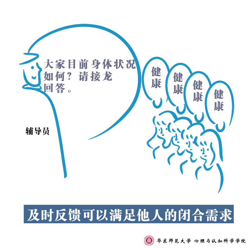 在面向全社会提供疫情防控心理支持的同时,华东师范大学心理与认知科学学院的师生们也通过手绘形式,向大家进行心理学知识的科普:防疫工作中,高校辅导员们每天与学生保持联系,全面了解学生的身体状况、动向并发布各类通知,系列③所描述的是师生之间的互动行为所呈现的心理学意义。手绘设计人:2018级本科生喻里雯文字:庄瑜、董镕指导教师:沈怡廷、陆静怡
