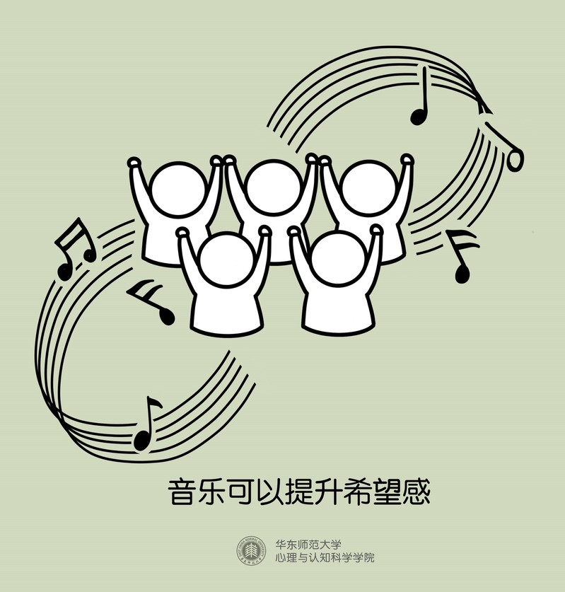 在面向全社会提供疫情防控心理支持的同时,华东师范大学心理与认知科学学院的师生们也通过手绘形式,向大家进行心理学知识的科普,系列⑨展现的是面对疫情时,音乐对人们身心健康起的重要作用,同时为大家附上由我院“心节奏”合唱团演唱的歌曲。