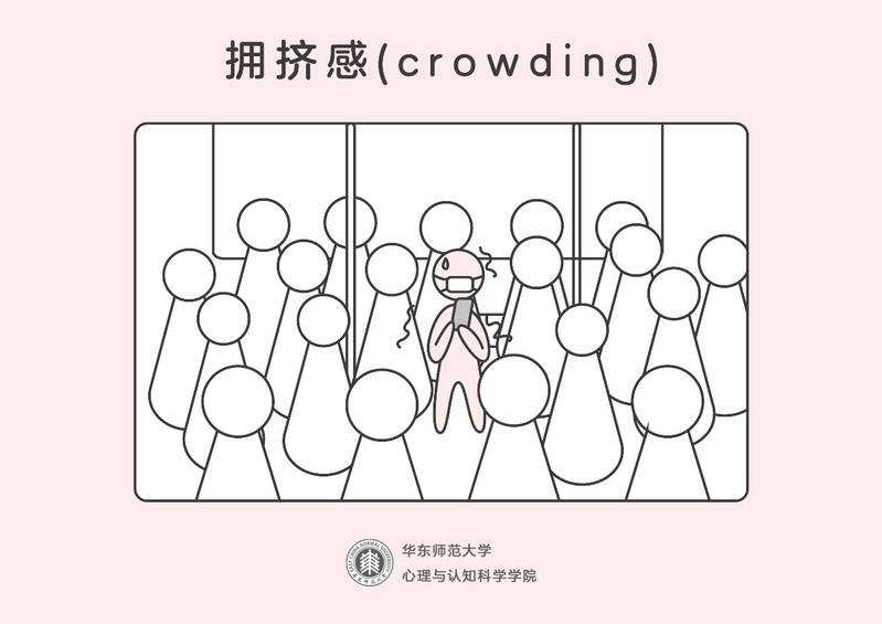 拥挤感是指人们觉察到空间有限的心理状态。在拥挤的环境中,人们无法有效加工周遭过量的信息,环境中的他人干扰了人们的活动,因而拥挤的环境会让人倍感压力。