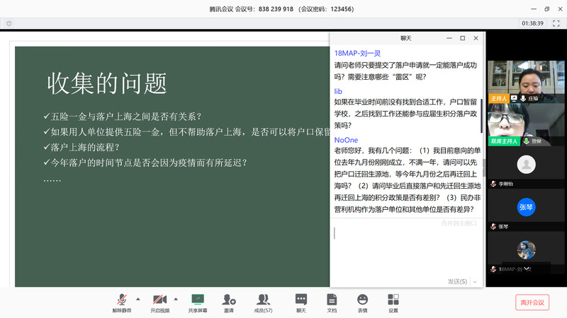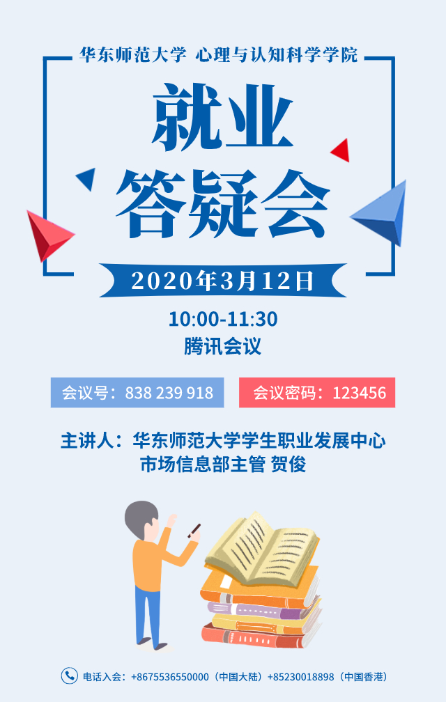 2020年3月12日,学院通过云视频的方式,举办“华东师范大学心理与认知科学学院2020届毕业生就业答疑会”,邀请校学生职业发展中心市场信息部主管贺俊作为主讲人,院党委副书记兼副院长庄瑜主持,近80名毕业生参与活动。面对今年就业的新形势和新政策,学生们就落户、档案、考研、公务员考试、非全日制非定向生就业等问题展开提问,贺俊老师都耐心地一一作答,尤其对就业过程中容易遇到的“坑”作了特别提醒,现场互动气氛热烈,效果良好。
