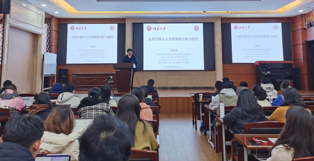 2022年2月23日下午,心理与认知科学学院名誉院长周晓林教授,在俊秀楼223礼堂为2019、2020级耀翔班及2021级心理+计算机双学位的同学们带来了题为“心理学拔尖人才培养的目标与途径”的讲座。本次活动由本院副院长李先春教授主持。该讲座作为我校拔尖计划2.0全国线上书院主题活动周的重要活动之一,在该网站同步直播。