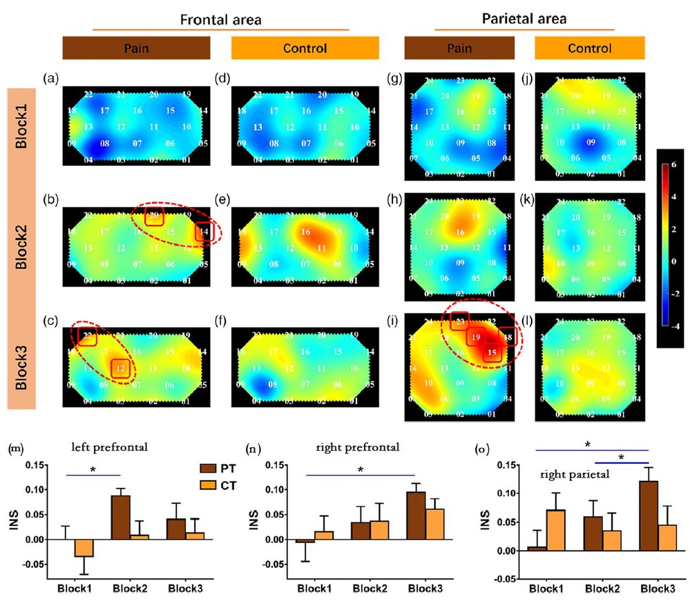 本研究发现,在疼痛状况下,随着合作的推进,双方的脑间活动同步性不断增加,先后表现在左外侧前额叶和右侧顶叶区域(Wang et al., 2019)。