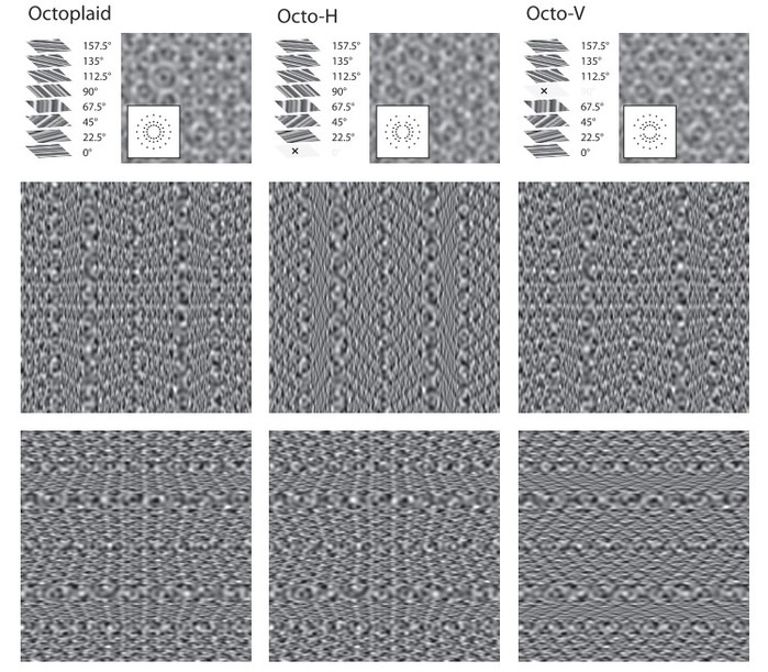 为了验证这一问题,研究者采用了特殊的图像处理方法,以控制不同空间频谱信息对于深度知觉的影响(见下图)。在不同的实验条件下,特定朝向的空间频谱信息被添加/除去,从而使研究者可以比较其对于深度知觉的影响。研究者通过数学建模的方法进一步指出,不同朝向的频谱信息在知觉加工中的影响与贝叶斯理想观察者模型(Bayesian Ideal Observer Model)所推测的优化整合过程一致,说明我们的知觉系统有效地整合了各种不同特征的空间信息,从而从不同方面促进深度知觉这一过程。这一研究也帮助我们进一步认识到,人类的知觉加工与计算视觉研究中的特征信息有着密切的联系,而并非是一个直觉的、启发式的过程。对于深度知觉的研究将有助于我们认识自己,并促进相关计算机视觉及人工智能的发展。