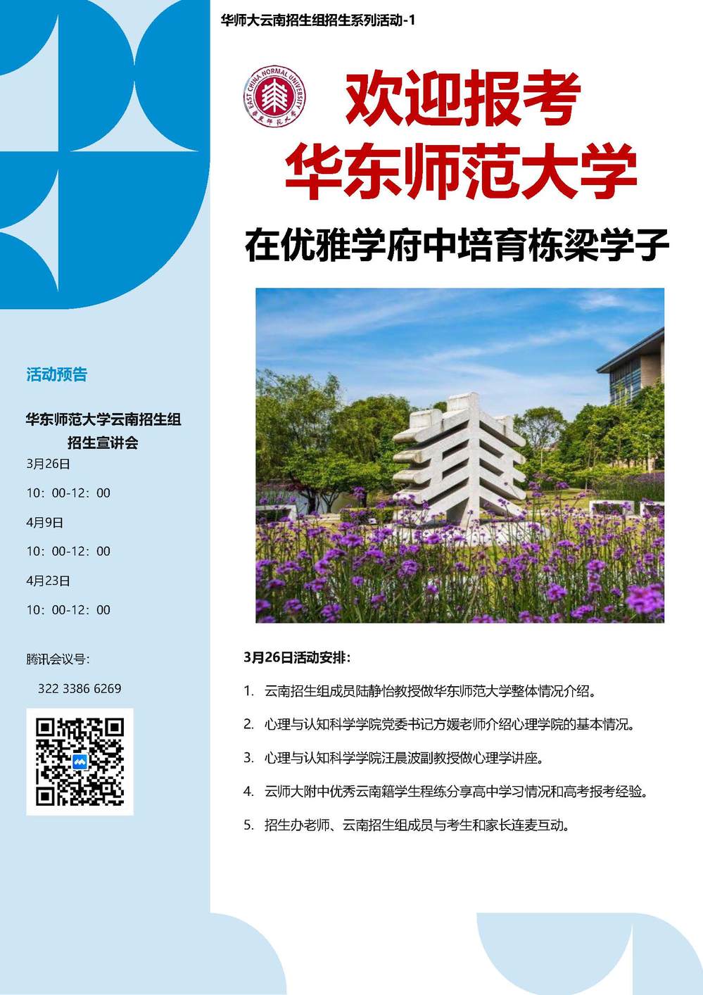 华东师范大学云南招生组系列招生宣讲会(第一场)预告