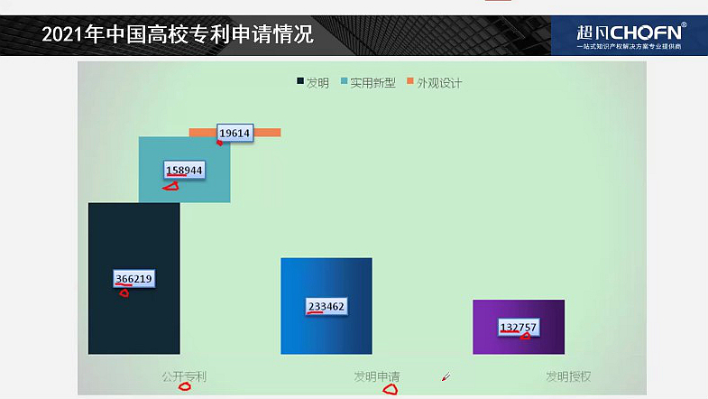 邱小波首先介绍了华东师范大学的专利申请数量逐年上涨的趋势及专利申请的行业分布情况。