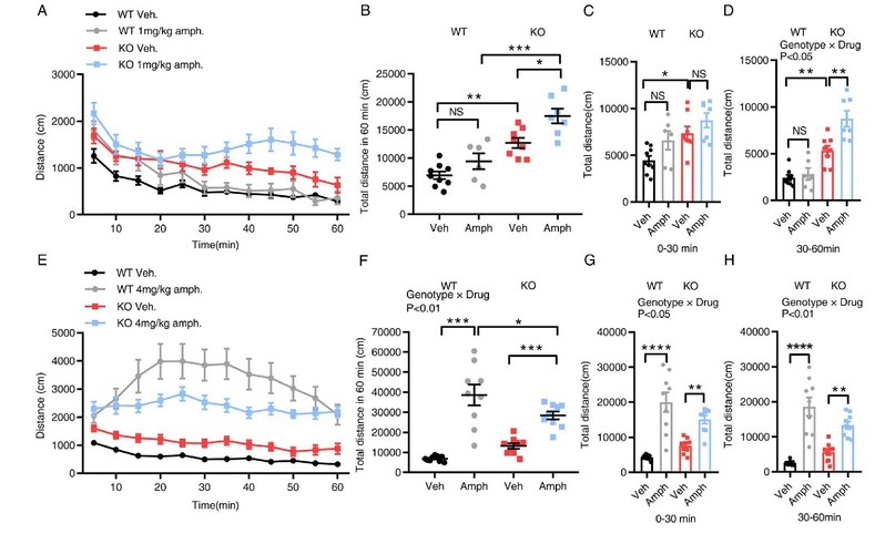 图7 Sapap4基因缺失动物对低剂量安非他命表现出超敏反应