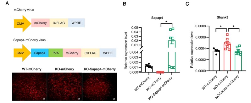 图3 恢复Sapap4表达可纠正Sapap4基因缺失动物中Shank3 mRNA的表达