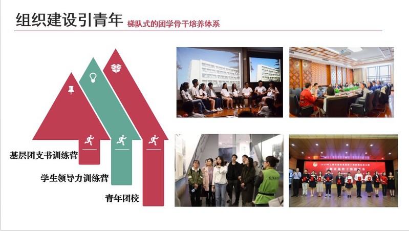 院团委根据不同层次学生的需求,搭建了“新生团支书训练营”— “学生领导力训练营”— “青年团校”的梯度式的骨干培育体系,通过“新生团支书训练营”培养学生团支书的实务操作能力和支部管理能力;通过“学生领导力训练营”挖掘和培养优质的学生骨干;通过“青年团校”开展思想引领,培育拔尖人才。