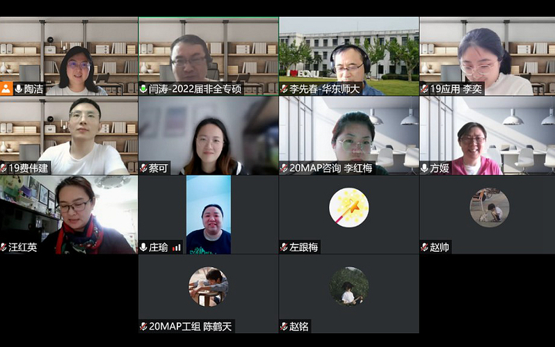 学院领导和老师针对毕业生关心的问题进行一一回应,并和毕业生代表就如何优化建议并落地开展了深入讨论。在上海疫情的特殊时期,线上相聚并没有阻断大家之间的情感与牵挂,师生一起回忆难忘而充实的学习生活,畅谈学院建设的优策良方。学院领导在总结发言中对疫情期间毕业生对各项工作的支持表示了充分肯定,希望同学们在毕业后仍能保持学习的激情,投入到新的角色和岗位中,不辱时代使命。