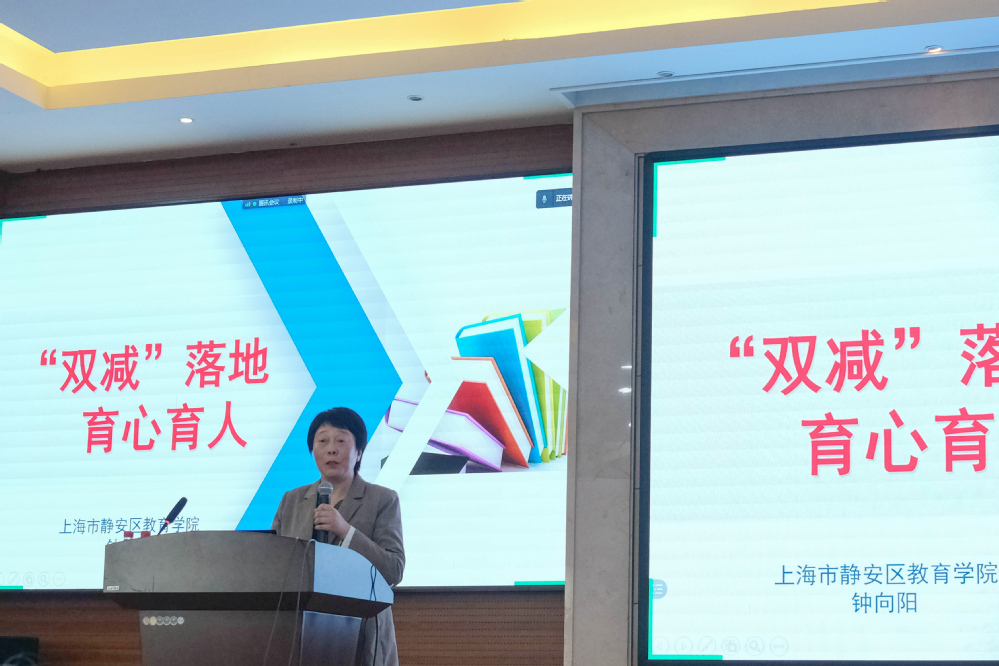 钟向阳在题为“‘双减’落地,育心育人”的报告中指出,“双减”政策围绕着立德树人根本任务,树立健康第一的教育理念,让义务教育回归到立德树人的初心。而推进“双减”政策落地、大力发展素质教育,需要学校、家庭、社会各方凝心聚力、携手同行。