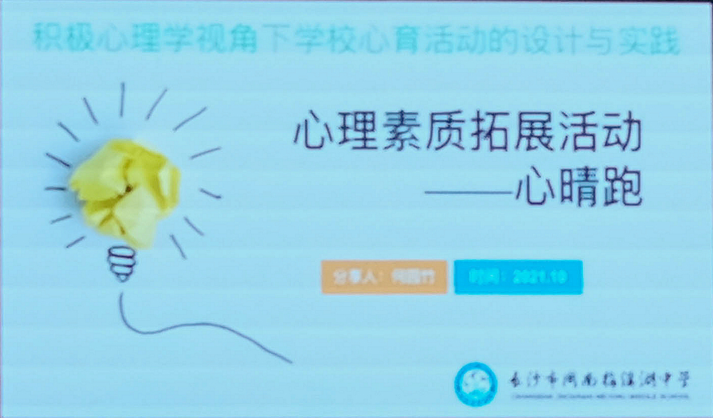 何园竹通过在线方式,作了题为“心理素质拓展活动——心晴跑”的报告,与大家分享了积极心理学视角下一项学校心育活动的设计与实践——心理素质的拓展活动:心晴跑。这一活动能够提供丰富学生课余生活的平台,加强学生参与活动、组织活动的积极性,培养学生乐观、坚强、幸福等积极心理品质,促进其综合素质的发展与心理健康水平的提升。