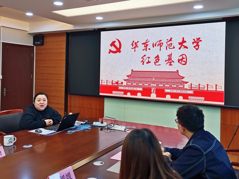 在红色文化交流环节,庄瑜老师结合我校图书馆“天地英雄气 千秋尚凛然”党史学习教育专题展进行讲解,介绍了陈骏、陈亮等先烈的红色事迹,具体分享了华东师范大学红色文化建设方面的情况。