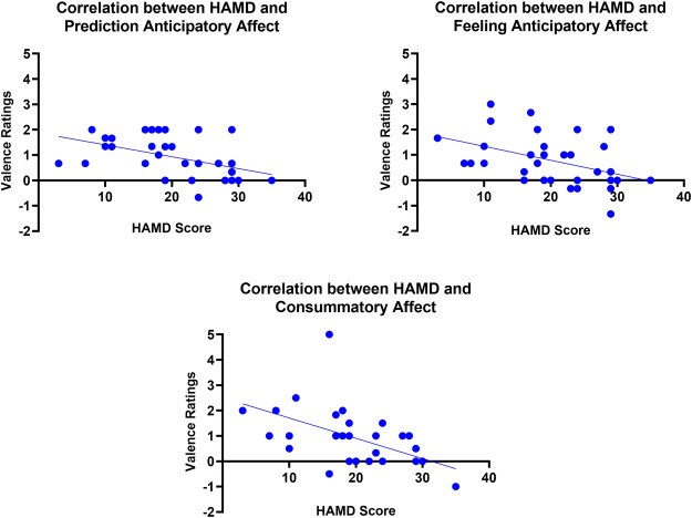 图5. MDD组情绪反应性的效价评分与HAMD得分的相关性