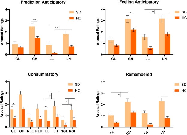 图4. SD组与控制组情绪反应的唤醒评分