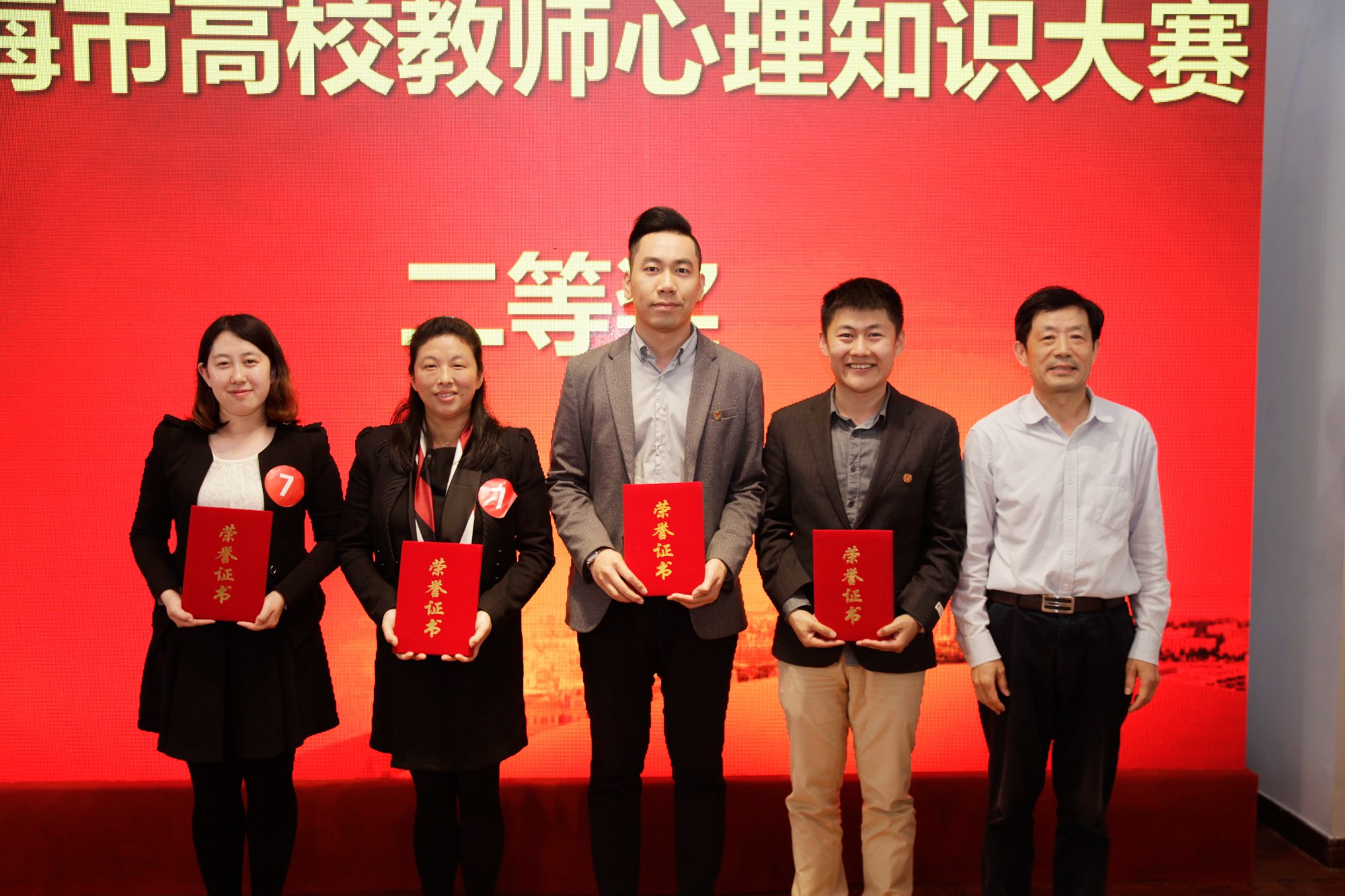 我校辅导员董镕(右二)、成一川(右三)获“沪江医教杯”上海市高校教师心理知识大赛二等奖