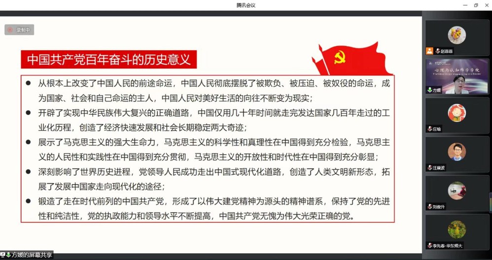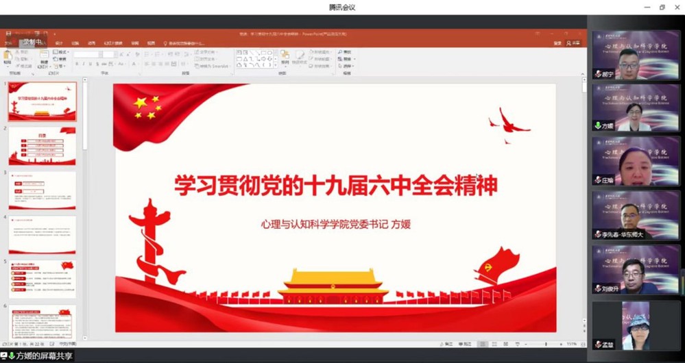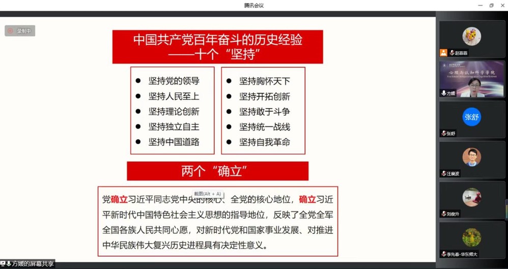 方媛书记号召师生党员,发扬伟大的抗疫精神,坚持建设世界一流心理学科目标毫不动摇,以更加优异的成绩喜迎党的二十大胜利召开。与会党员纷纷交流学习心得体会,表示将不断奋斗,切实把党的十九届六中全会精神融入到思想里,体现到行动上,落实到学习工作中。