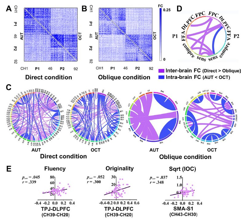 本研究发现证实了空间距离和注视角度对创造性言语交流的影响,初步揭示了效应背后的脑间神经互动机制,为进一步探索非言语要素对人际交流的影响提供了一个新的、可量化的神经实验范式。实践意义方面,本研究发现也为提升团体创造性交流的效率,增进团体创造性表现提供了有益的启发。