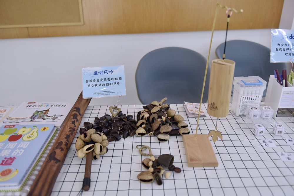 互动展区设置了自我关怀翻翻乐,从认知行为疗法出发,挑战“无能”、“不可爱”和“无价值”三类核心信念。观众可以在六面印章的引导下,加深“我可以”、“我值得”和“我可爱”的积极引导,并在正念区,感受听觉、嗅觉带来的此时此刻体验……