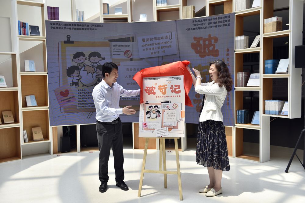 2025年5月22日,华东师范大学心理学科普馆2025年特展——《破“苛”记》自我关怀主题心理学科普展在普陀校区孟宪承·刘佛年教育成就陈列室正式开幕。展览以“525心理健康日”为契机,以“自我关怀”为主题,围绕善待自己、共通人性和静观当下三个维度,打造一场集学术深度、实践温度与社会关怀于一体的科普盛宴。